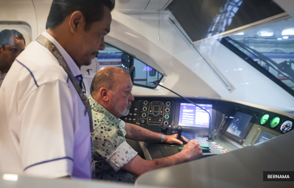 His Majesty arrived in the KTMB Electric Train Service 3 (ETS3), which he personally drove after launching the service in Kuala Lumpur earlier today.