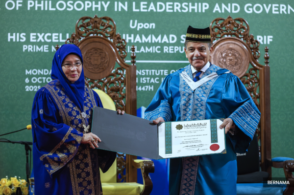 KUALA LUMPUR, Oct 6 — The International Islamic University Malaysia (IIUM) conferred Pakistani Prime Minister Muhammad Shehbaz Sharif an Honorary Doctor of Philosophy degree in recognition of his outstanding leadership and contributions to nation-building and global Islamic governance.