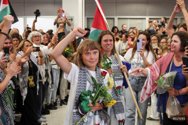 ATHENS, Oct 7 — Swedish campaigner Greta Thunberg arrived in Greece to a cheering pro-Palestinian crowd yesterday after she and hundreds of other activists captured by Israel on the high seas were deported following an attempt to bring aid to Gaza.