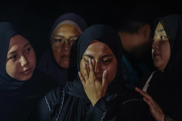 A sombre atmosphere filled the ceremony, with Mustaqqeem’s wife, Nur Faratin Mohd Othman, 31, seen weeping and visibly grief-stricken throughout the burial.