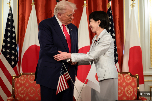 Trump also praised Japan's efforts to purchase more US defence equipment, while Takaichi said Trump's role in securing ceasefires between Cambodia and Thailand, and Israel and Palestinian militants, were "unprecedented" achievements.