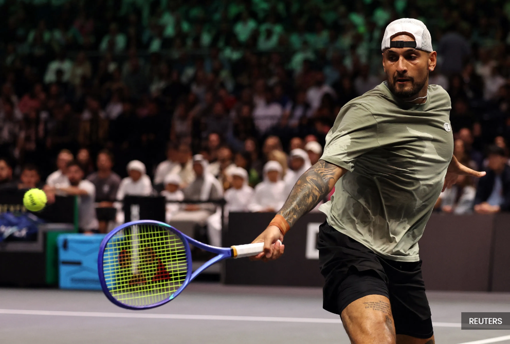 Playing in front of a sold-out crowd at Dubai's Coca-Cola Arena, Kyrgios negotiated the slightly smaller "equaliser" court on women's world number one Sabalenka's side to secure victory after an entertaining contest played under modified rules.