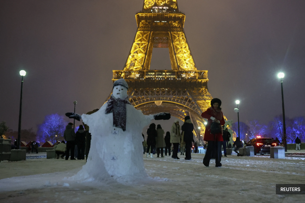 The weather forced authorities to cut flights at Paris' Charles de Gaulle and Orly airports by 15 per cent until the evening, French Transport Minister Philippe Tabarot said. Runways needed to be cleared and aircraft de-iced, he added.