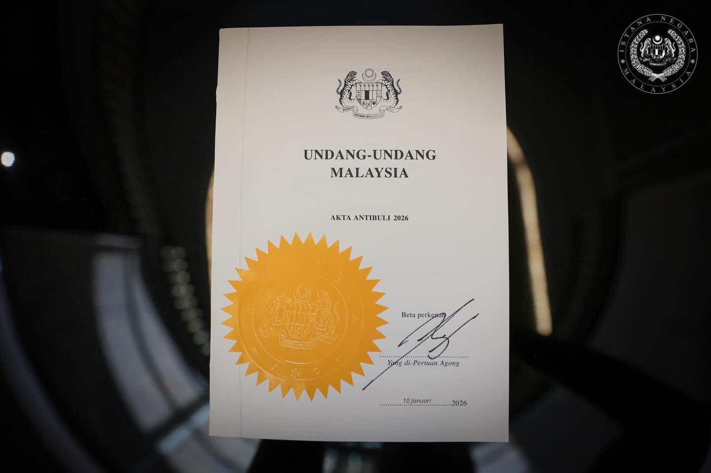 KUALA LUMPUR, Jan 10 — His Majesty Sultan Ibrahim, King of Malaysia, signed the Anti-Bullying Act 2026 at Istana Bukit Tunku here today.