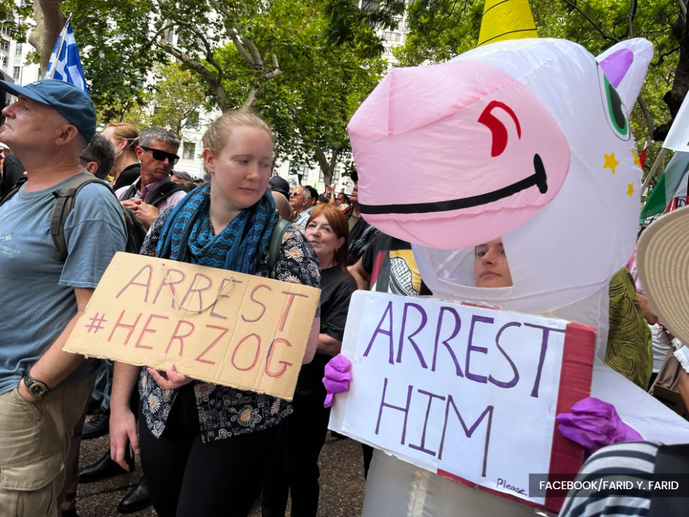 Police had been authorised to use rarely-invoked powers during the protest, including directing crowds to move, restricting their entry to certain areas and searching vehicles. A legal challenge to those restrictions was dismissed by a Sydney court yesterday. Herzog was not present at the protest site.