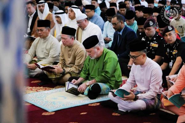 Masjid Negara Grand Imam Ehsan Mohd Hosni led the ceremony, attended by 1,500 worshippers, to pray for the well-being and health of Their Majesties who will reign on the throne for five years.