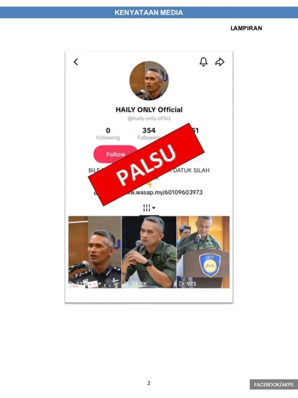 A notice on the official Facebook page of AKPS shows the offending TikTok account.