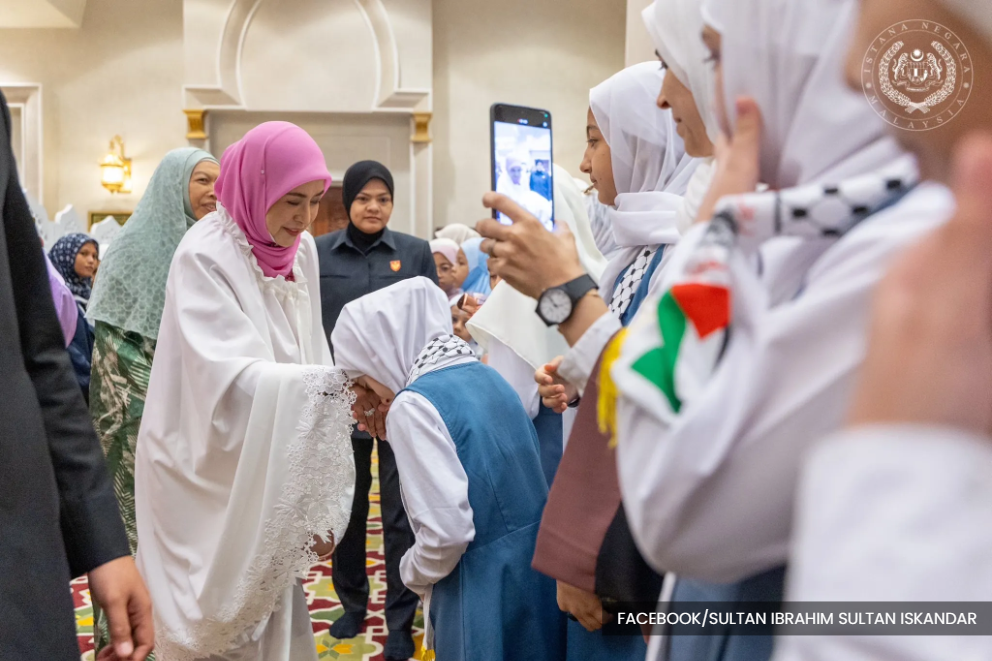 Raja Zarith Sofiah also presented contributions to 70 children under the care of Yayasan Chow Kit, 50 Syrian and Palestinian children from Sekolah Al-Aqsa Kuala Lumpur, and 30 Muslim converts.