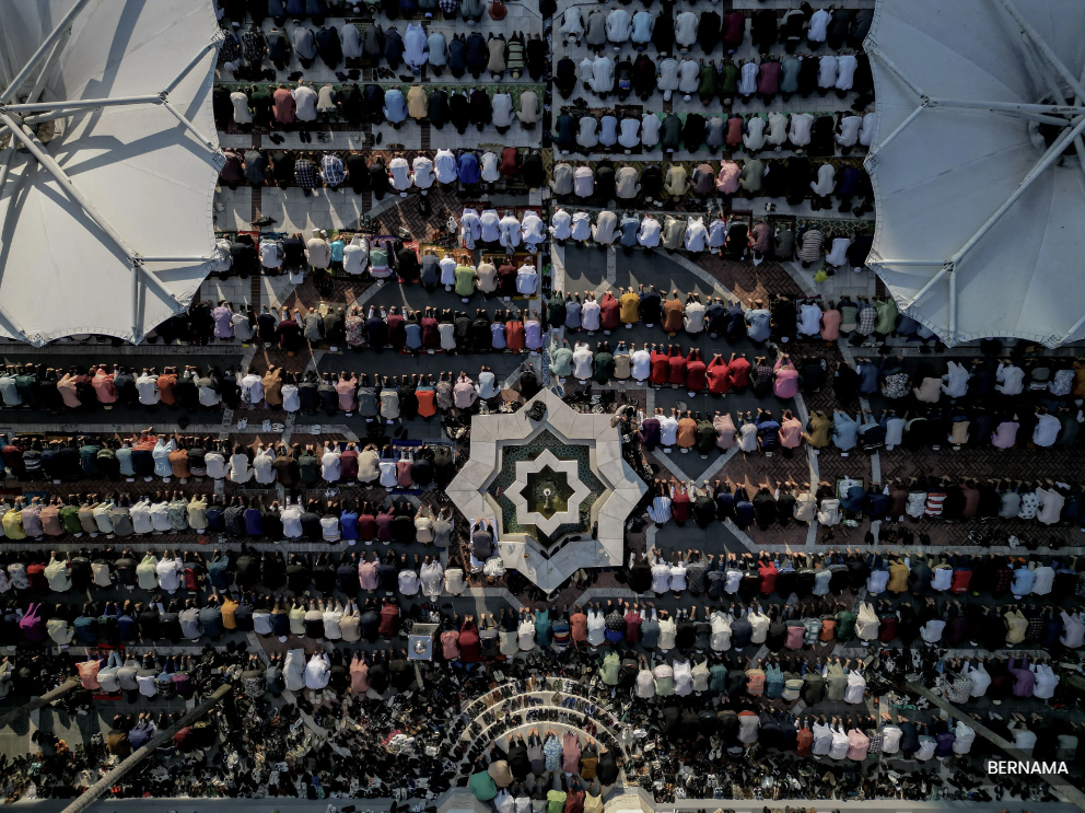 From Masjid Negara in the capital to mosques and surau in rural areas, the good weather was fully utilised by Muslims, who began gathering as early as 7am to fill the houses of worship, chanting takbir together before performing the Aidilfitri prayers and listening to the sermon.