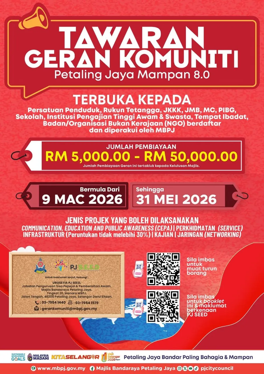 Meanwhile, the PJ SEED 8.0 grant offers between RM5,000 and RM50,000 to support community-based projects.
