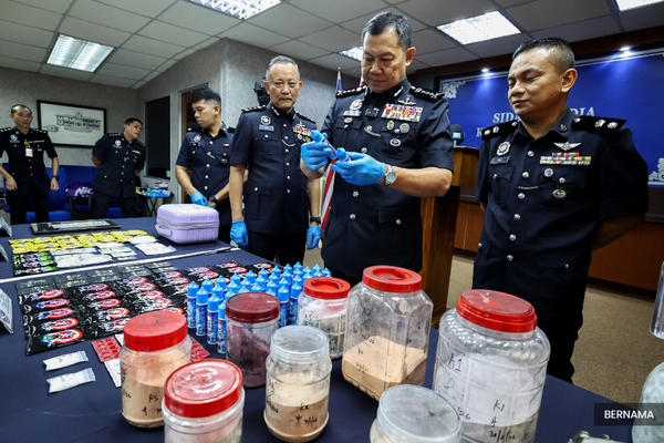 "We also seized liquid MDMA (weighing 2.4 litres, worth RM1,400); ecstasy powder (1,098g, RM13,200); 80 Erimin 5 pills (22g, RM1,600); two packets of syabu (26g, RM1,300); and various drug repackaging equipment,” he said during a media conference at the headquarters today.