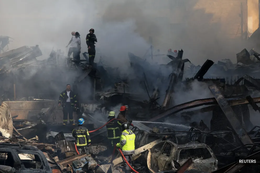 The Israeli army said yesterday it struck more than 100 sites “within 10 minutes” across multiple areas in Beirut, the Beqaa Valley and southern Lebanon, marking the “largest” coordinated strike since the start of the current offensive.