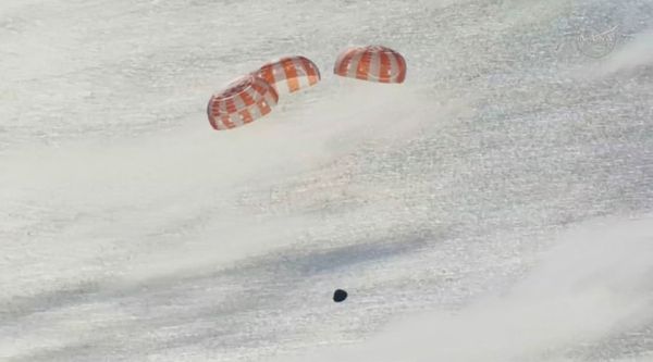 The splashdown under partly cloudy skies was carried by live video feed in a NASA webcast. “A perfect bull’s eye splashdown for Integrity and its four astronauts,” NASA commentator Rob Navias said moments after the landing.