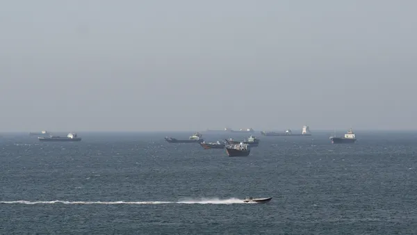 After two Indian-registered ships reported being attacked yesterday while trying to pass through the strait, shipping data showed traffic through the narrow waterway had come to a stop early today.