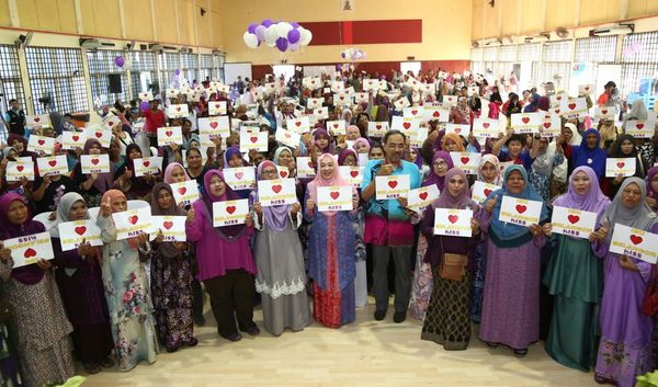 Pengerusi Pertubuhan Kebajikan dan Amal Wanita Selangor (PEKAWANIS), Datin Seri Shamshida Taharin bergambar bersama penerima Kasih Ibu Smart Selangor (KISS) DUN Permatang, Kuala Selangor. 18 FEBRUARI 2018 | REMY ARIFFIN