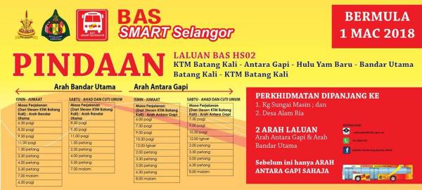 SHAH ALAM, 1 MAC : Laluan Bas Smart Selangor di Batang Kali dipinda bagi memberikan perkhidmatan yang lebih baik mulai hari ini.