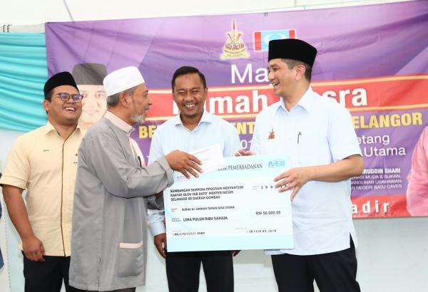 BATU CAVES, 26 MAC: Kerajaan Negeri menerusi Pemerbadanan Menteri Besar Selangor (MBI) menyalurkan sumbangan RM50,000 kepada Surau Al-Jannah Taman Jasa Utama 6 Batu Caves, hari ini.