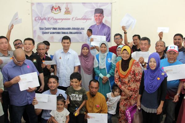 Dato' Seri Mohamed Azmin Ali menyempurnakan penyerahan sumbangan kepada masyarakat setempat di Taman Ukay Perdana, Ampang. 14 APRIL 2018 | FIKRI YUSOF