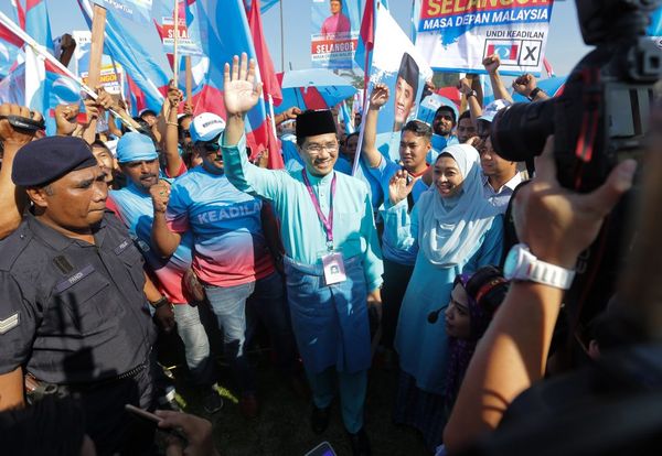 Dato' Seri Mohamed Azmin Ali melambaikan tangan kepada penyokong yang hadir ketika Majlis Penamaan Calon P98. Parlimen Gombak berlangsung, Sungai Pusu. 28 APRIL 2018 | HAFIZ OTHMAN