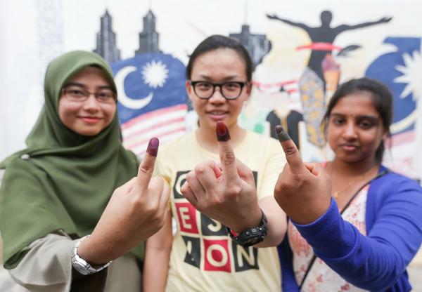 GOMBAK, 9 MEI: Tiga sekawan berbilang bangsa, tidak melepaskan peluang untuk turut sama membuang undi pada Pilihan Raya Umum (PRU14), ini.
