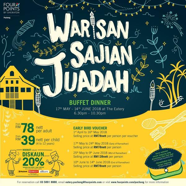Untuk tempahan boleh hubungi 0358918855 atau email ke eatery.puchong@fourpoints.com.