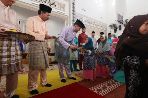 Duli Yang Teramat Mulia (DYTM), Raja Muda Selangor, Tengku Amir Shah berkenan mencemar duli berangkat ke Masjid Saidina Ali, Bukit Sentosa bagi menyempurnakan majlis penyerahan sumbangan Aidilfitri.