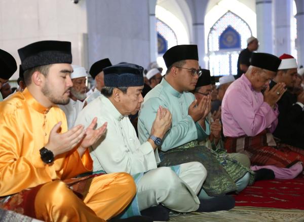 Sultan Sharafuddin dan Tengku Amir Shah turut meluangkan masa bersalaman dengan jemaah sebelum meninggalkan perkarangan masjid sekitar 2.15 petang.