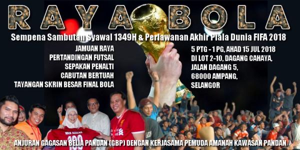 Pengarah Program Raya Bola, Aman Shah Ahmad berkata, aktiviti anjuran KEADILAN Pandan dan AMANAH Pandan Indah itu dijadualkan berlangsung, pada 15 Julai ini.