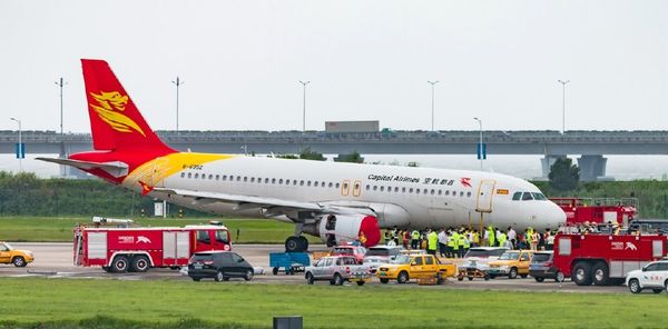 Capital Airlines, dalam kenyataan di Weibo menyatakan ia mengesyaki pesawat itu bertembung dengan angin kuat ketika cuba mendarat di Macau dan kru merumuskan tayarnya rosak.