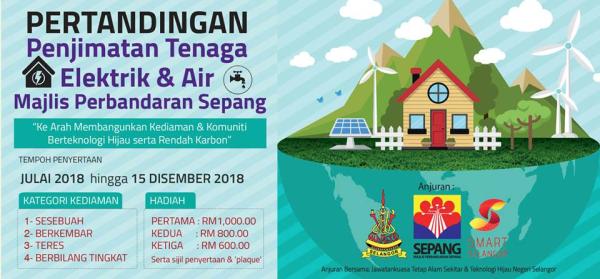 SEPANG, 6 SEPT: Majlis Perbandaran Sepang (MPSepang) dengan kerjasama Jawatankuasa Tetap Teknologi Hijau Selangor menganjurkan Pertandingan Penjimatan Tenaga Elektrik dan Air, bermula Julai hingga 10 Disember ini.
