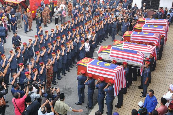 SHAH ALAM, 4 OKT: Kematian enam anggota Bomba dan Penyelamat ketika menjalankan operasi menyelamat (SAR) seorang remaja terjatuh ke dalam lombong di Taman Putra Perdana, Puchong dianggap syahid.