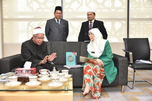 KUALA LUMPUR, 8 OKT: Timbalan Perdana Menteri, Datuk Seri Dr Wan Azizah Wan Ismail hari ini mengadakan kunjungan istisyari (konsultasi) buat kali pertama kepada Mufti Wilayah Persekutuan, Datuk Seri Dr Zulkifli Mohamad Al-Bakri.