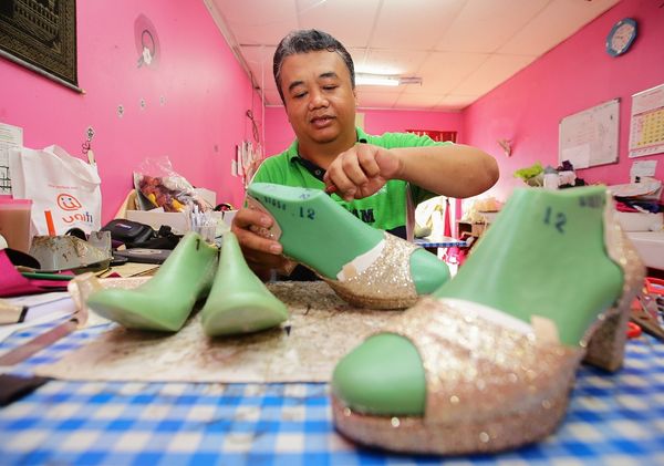 Rizal Abu Bakar,45 menunjukan hasil kerja pembuatan kasut pengantin oleh beliau di Taman Medan | HAFIZ OTHMAN