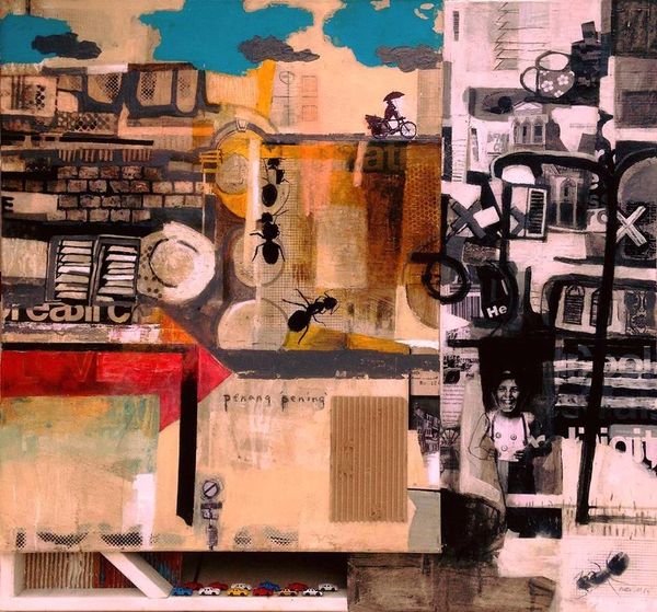 Saya tertarik dengan subjek dalam siri lukisan abstark pelukis Norlisham Nor. Beliau memilih squatters atau setinggan sebagai tema dalam kebanyakan karyanya. Berasal dari Singapura tetapi beliau kini menetap di Kuala Lumpur. Itulah yang saya hairankan, bagaimana seseorang yang berasal dari sebuah kota metropolitan yang gah memilih setinggan sebagai subjek.