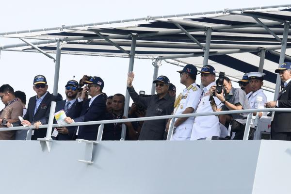 Dr Mahathir dan delegasi dibawa menaiki KD Perantau, milik Tentera Laut Diraja Malaysia selama sejam setengah sambil menerima tabik hormat daripada kru kesemua kapal tersebut di sekitar Resorts World Langkawi di sini pada pameran yang memasuki hari kedua hari ini.