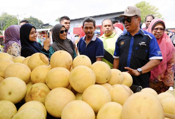 KLANG, 6 April -- Menteri Pertahanan Mohamad Sabu (dua, kanan) merangkap Anggota Parlimen Kota Raja sempat melelong buah nanas ketika melawat ruang pameran selepas merasmikan program Karnival Selangor Agro Market 2019 di Institut Penyelidikan dan Kemajuan Pertanian Malaysia (MARDI) Klang hari ini.