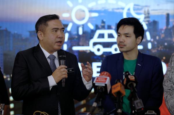 PETALING JAYA, 11 April -- Menteri Pengangkutan Anthony Loke Siew Fook berucap merasmikan pelancaran teknologi pengesahan penumpang menggunakan kaedah swafoto pada aplikasi Grab di Ibu Pejabat Grab Malaysia hari ini.
