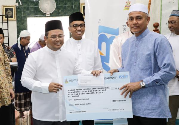 BATU CAVES, 5 MEI: Kira-kira RM360,000 disumbangkan Pemerbadanan Menteri Besar Selangor (MBI) untuk masjid dan surau kawasan Dewan Undangan Negeri (DUN) Sungai Tua sempena Ramadan, kali ini.