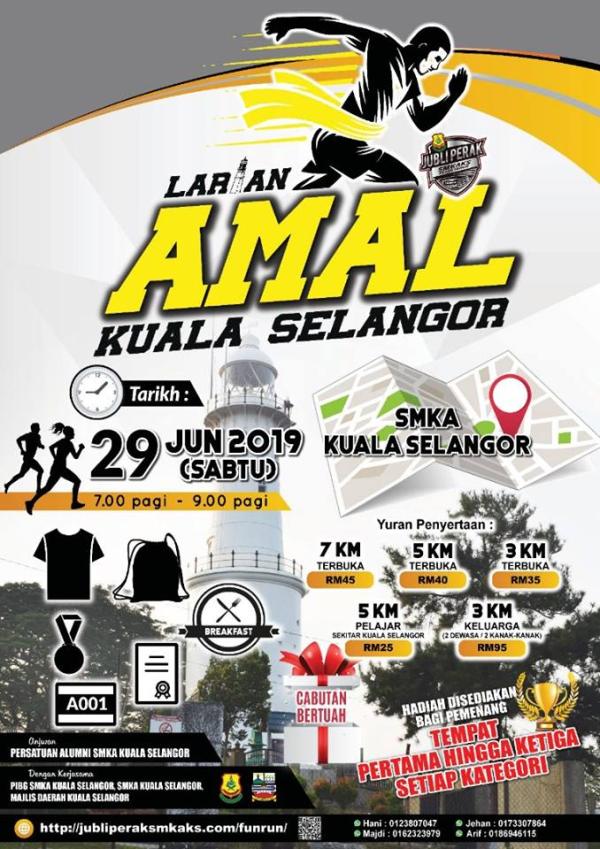SHAH ALAM, 21 MEI: Penggemar acara larian dipelawa menyertai Larian Amal Kuala Selangor 2019 di padang terbuka Sekolah Menengah Kebangsaan Agama (SMKA) Kuala Selangor, pada 29 Jun ini.