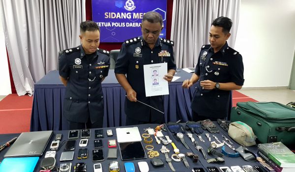 Abdul Aziz berkata, pelbagai barang curi turut dirampas antaranya 29 telefon bimbit, 15 jam tangan, empat kad bank, tiga kamera, dua komputer riba, barang kemas, topi keledar, sebuah kereta dan pelbagai alatan pecah rumah.