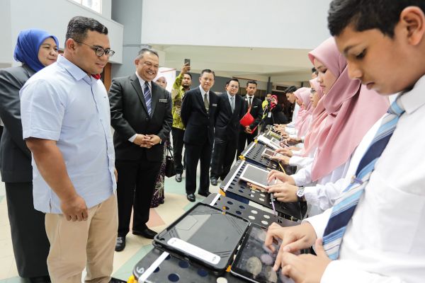 Dato' Menteri Besar, Amirudin Shari Melawat gerai multimedia ketika Program “3D Design Challenge: Smart Green City 2019” di Sekolah Asrama Penuh Integrasi Gombak. - Foto Fikri Yusof[/caption]