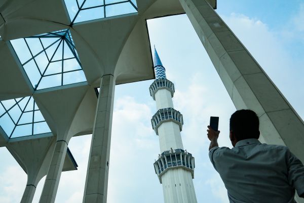 Peserta Program Selangor Royal Trail FAM Trip 2019 tidak melepaskan peluang merakamkan keunikan senibina Masjid Negeri, Shah Alam | ASRI SAPFIE