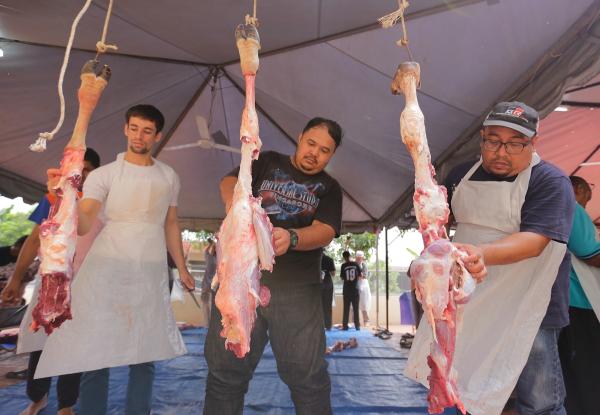 Petugas ibadah korban melapah daging untuk diagihkan kepada penduduk dalam Program Sumbangan Lembu Qurban, Ziarah Qurban, Majlis Kenduri Rakyat Hari Raya Aidiladha 2019 di Sekitar Surau DUN Sungai Tua pada 11 Ogos 2019. - Foto HAFIZ OTHMAN/SELANGORKINI