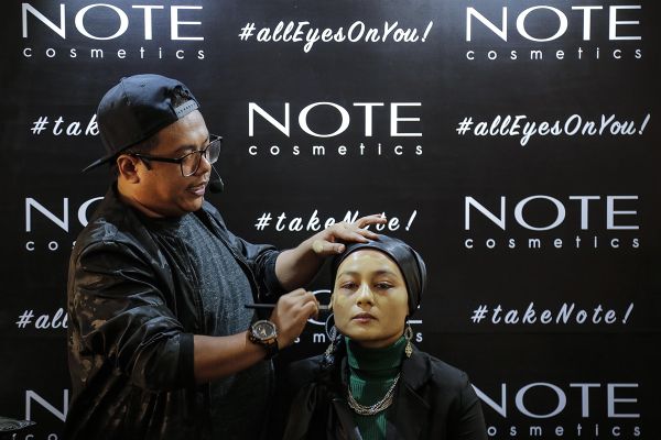 Jurusolek profesional sedang menunjukkan cara-cara memakai alat solek ketika Majlis Pelancaran Kiosk Kosmetik Note di Setia City Mall, Setia Alam pada 16 Ogos 2019. - Foto HAFIZ OTHMAN/SELANGORKINI