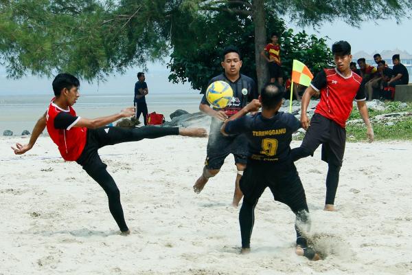 Saingan antara Gelombang FC (merah) bertemu Cherating FC (hitam) dalam pertandingan bola sepak pantai sempena Pesta Pantai Bagan Lalang @Sepang 2019 berlangsung di pantai itu. -Foto ASRI SAPFIE/SELANGORKINI