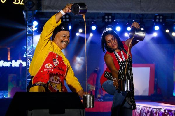Aksi memukau pakar teh tarik, Suliman Hamed bersama pelancong dari Amerika Selatan dalam Majlis Makan Malam 'Malaysia By Night' di Sunway Lagoon Beach Surf. - Foto ASRI SAPFIE/SELANGORKINI