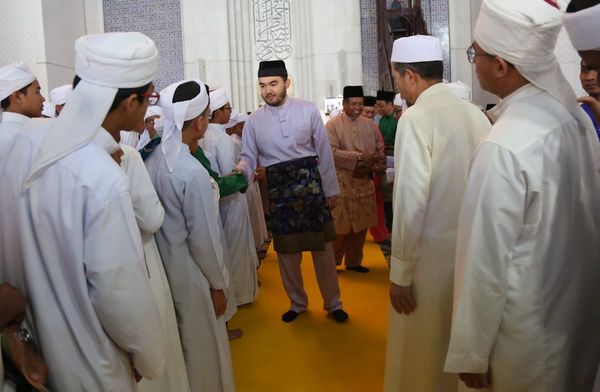 Duli Yang Teramat Mulia (DYTM) Raja Muda Selangor, Tengku Amir Shah bersalaman dengan jemaah selepas menunaikan Solat Jumaat pada Majlis Bacaan Yasin, Tahlil dan Doa Selamat sempena Hari Kebangsaan Ke-62, di Masjid Sultan Salahuddin Abdul Aziz Shah. 30 Ogos 2019. REMY ARIFIN/ SELANGORKINI.