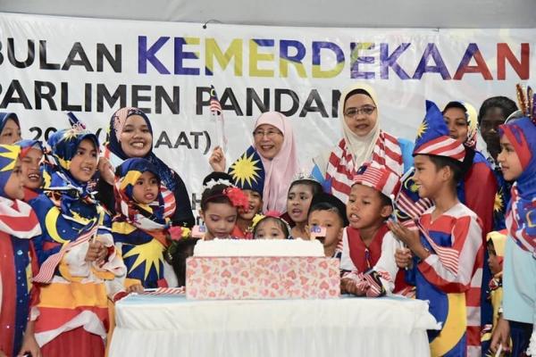 Timbalan Perdana Menteri, Datuk Seri Dr Wan Azizah Wan Ismail menyantuni penduduk yang ingin bergambar bersamanya ketika sambutan kemerdekaan peringkat Parlimen Pandan di Padang Permainan Rumah Pangsa Taman Lembah Maju, di Ampang, pada 30 Ogos 2019 - Foto Facebook Dr Wan Azizah Wan Ismail[/caption]