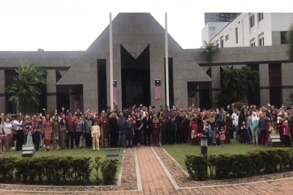 BANGKOK, 31 OGOS: Lagu kebangsaan ‘Negaraku’ berkumandang di perkarangan Kedutaan Besar Malaysia Bangkok, Thailand sempena sambutan Hari Kemerdekaan Ke-62.