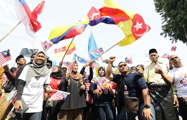 Peserta perbarisan mengibarkan bendera sempena Program Sambutan Hari Kemerdekaan DUN Sungai Tua di Padang Awam Batu Caves pada 31 Ogos 2019. Foto FIKRI YUSOF/SELANGORKINI